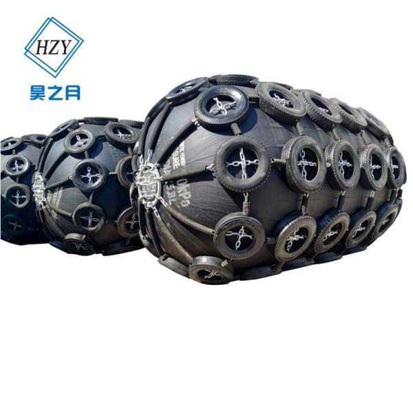 Floating pneumatic marine rubber fenders are known as Yokohama fenders or Yokohama-type pneumatic fenders. Floating pneumatic rubber fenders are made of the synthetic-cord-reinforced rubber sheet with compressed air inside. The insider air can enable it to float on the water and work as a shock absorbed between two ships (ship-to-ship), or between ships and berthing structures when they come alongside each other on the water. All Haozhiyue Marine Yokohama type floating pneumatic rubber fenders are manufactured and tested fully compliant with ISO 17357